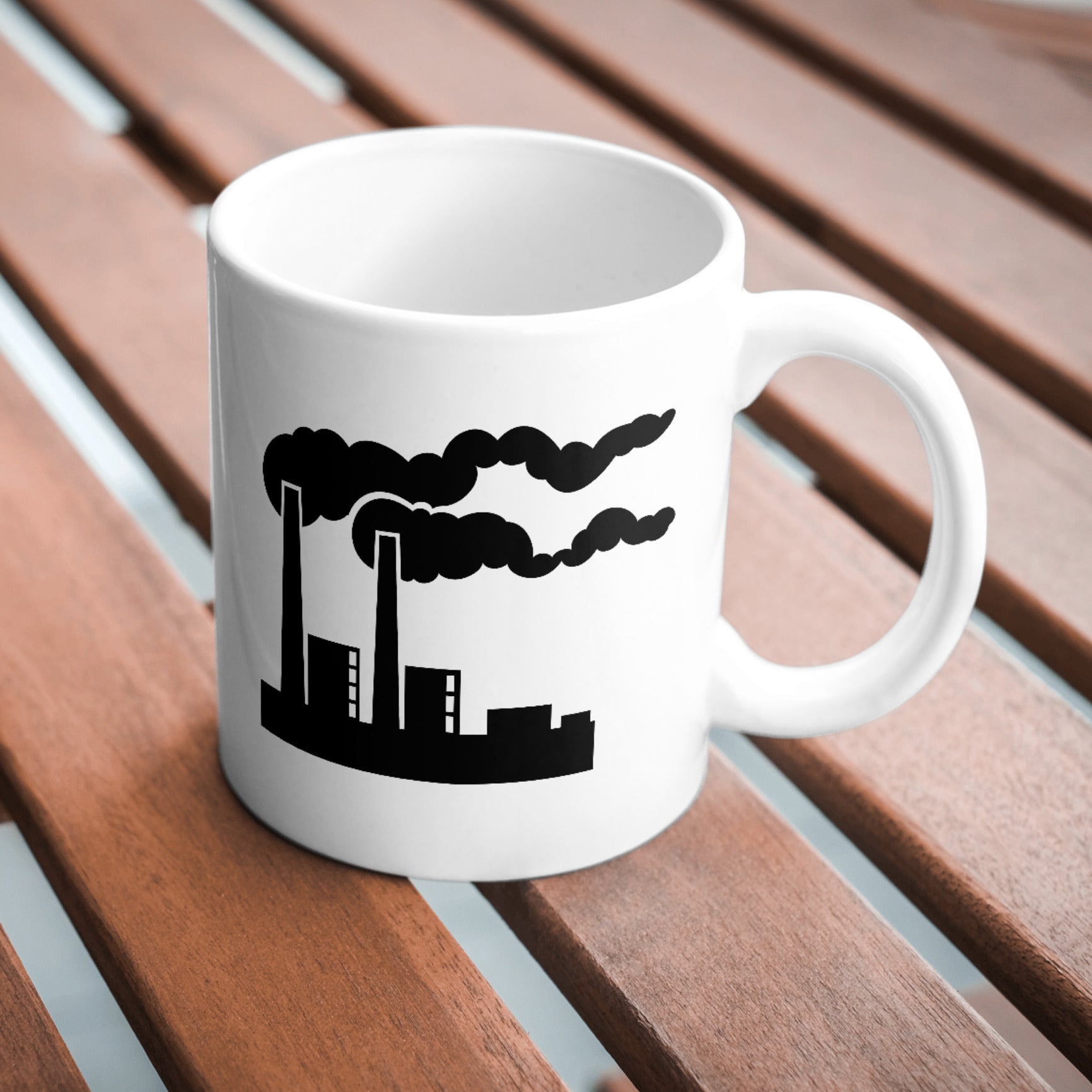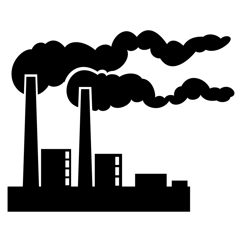 This vector design showcases an industrial plant with two tall smokestacks emitting stylized smoke. Ideal for cutting machines, it brings a striking visual element to projects.