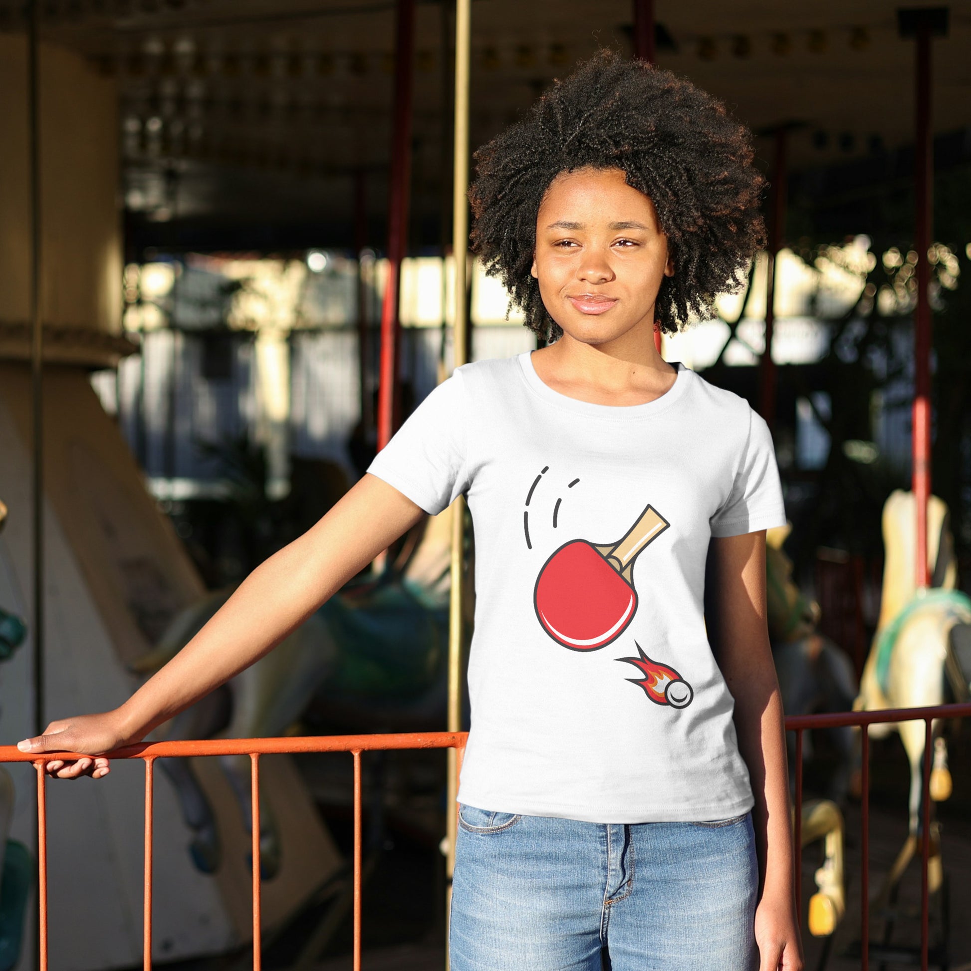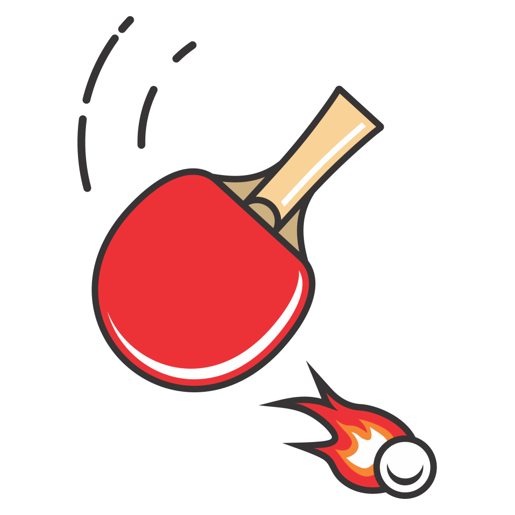 A fierce moment captured where a red table tennis paddle swings towards a blazing fireball. The energetic atmosphere conveys excitement and dynamism of the sport.
