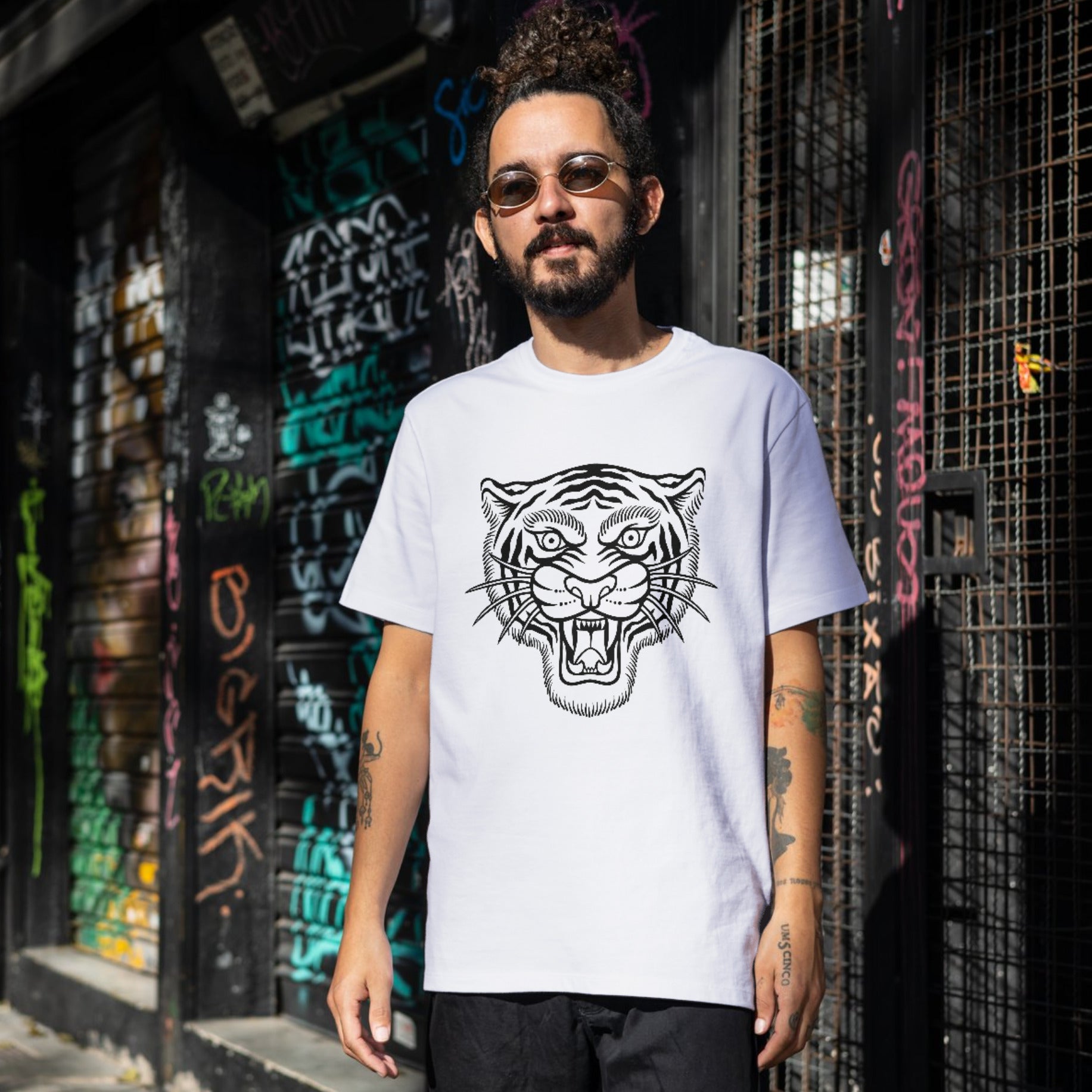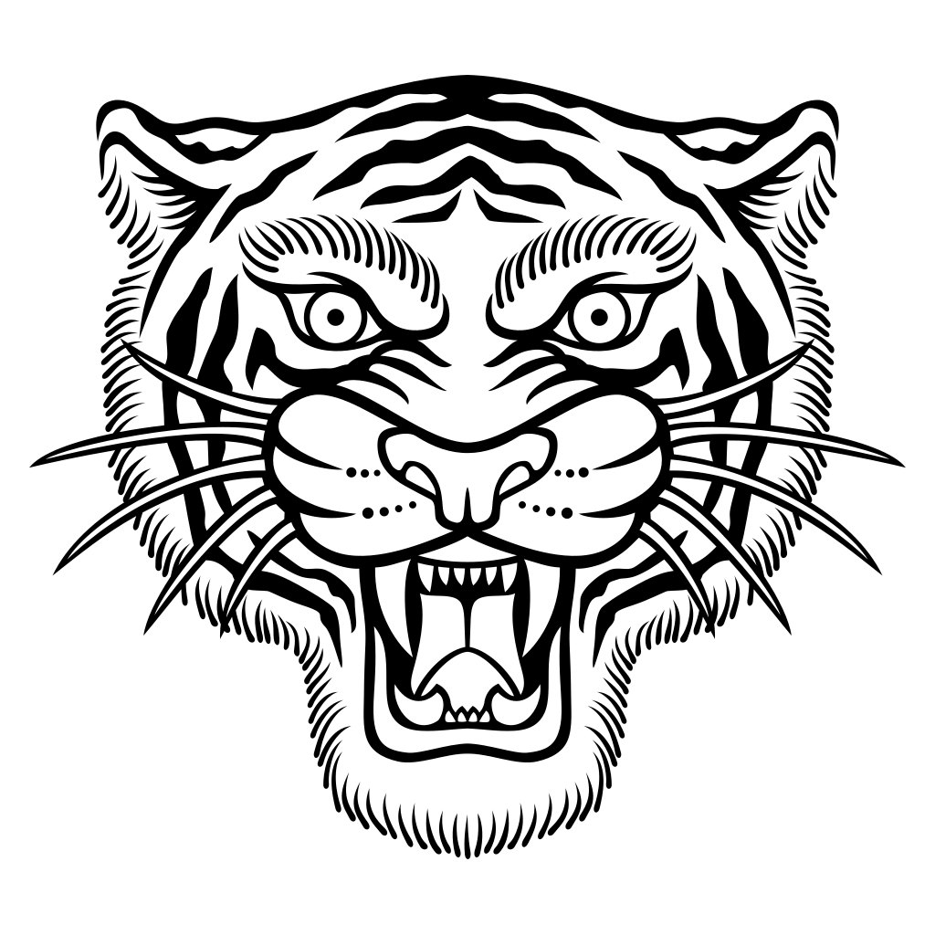 The fierce tiger head is depicted in intricate black and white. This design captures the raw energy and spirit of the majestic creature, perfect for crafting projects.