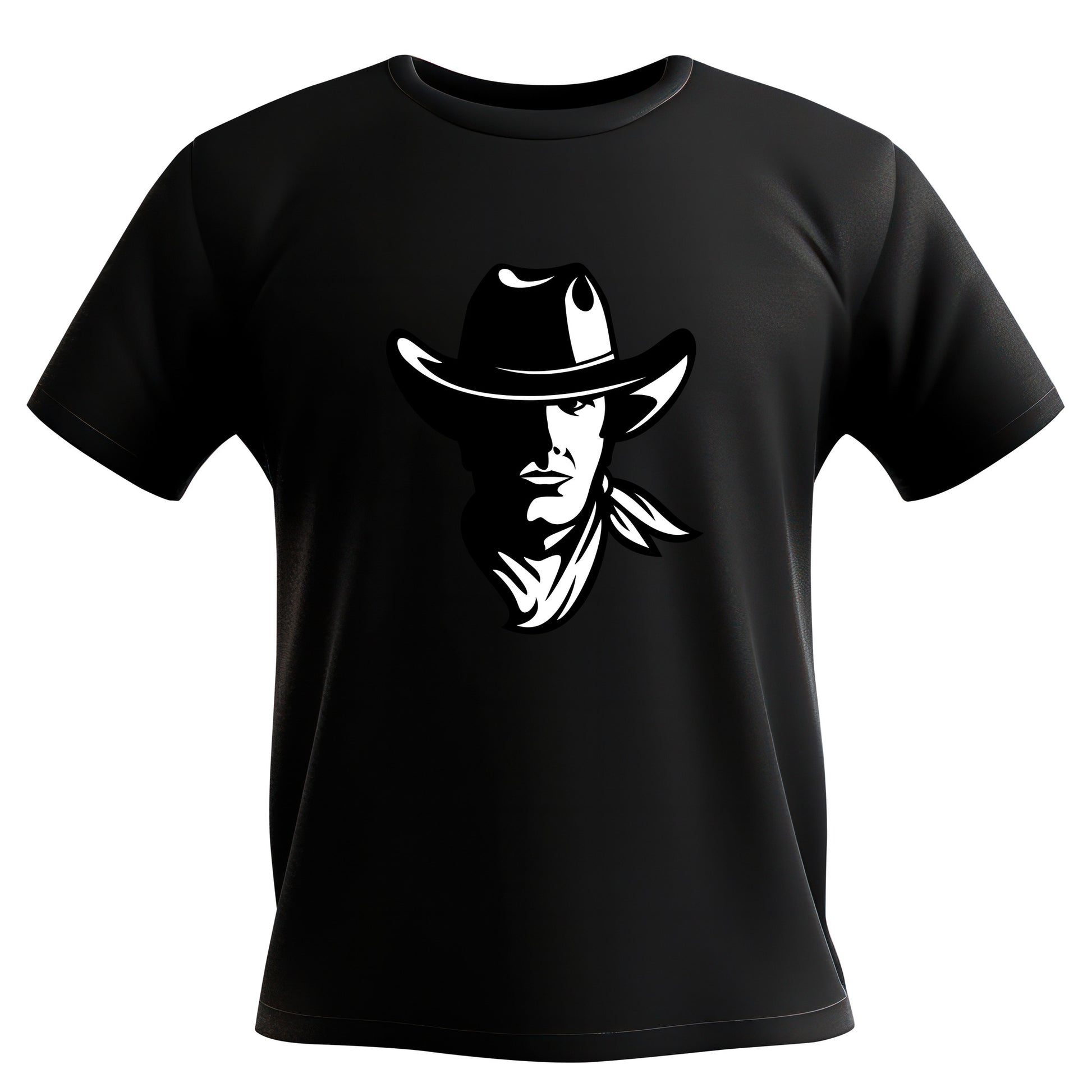 A striking vector design depicting a cowboy's head, featuring a sturdy hat and a bandana. Ideal for crafting, this artwork captures the spirit of the wild west.