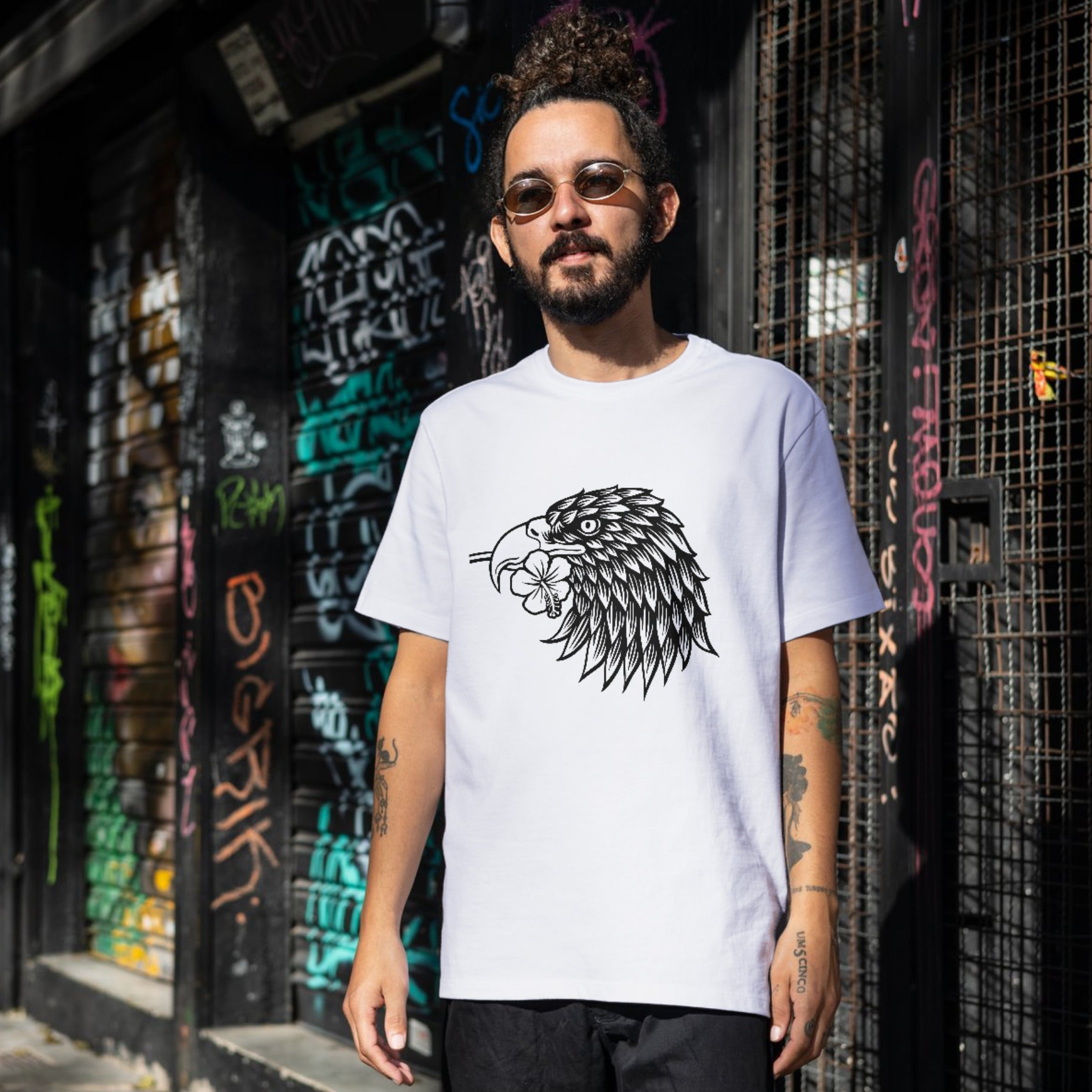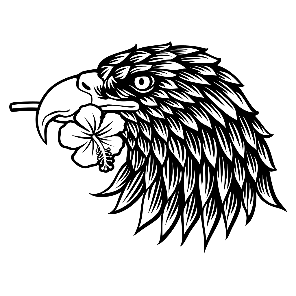A striking vector design featuring an eagle's head adorned with a delicate flower. Ideal for cutting machines, this artwork adds character and elegance to projects.