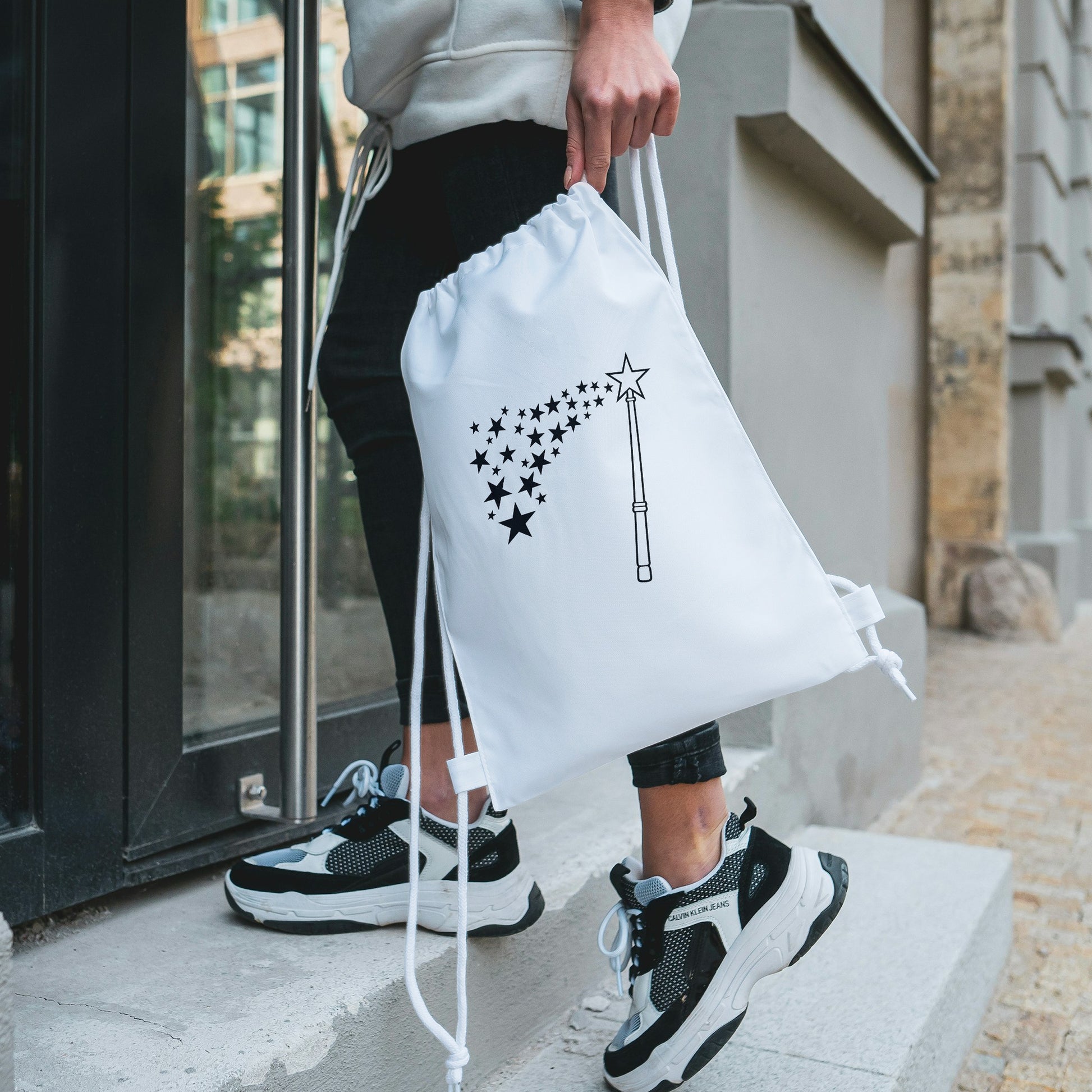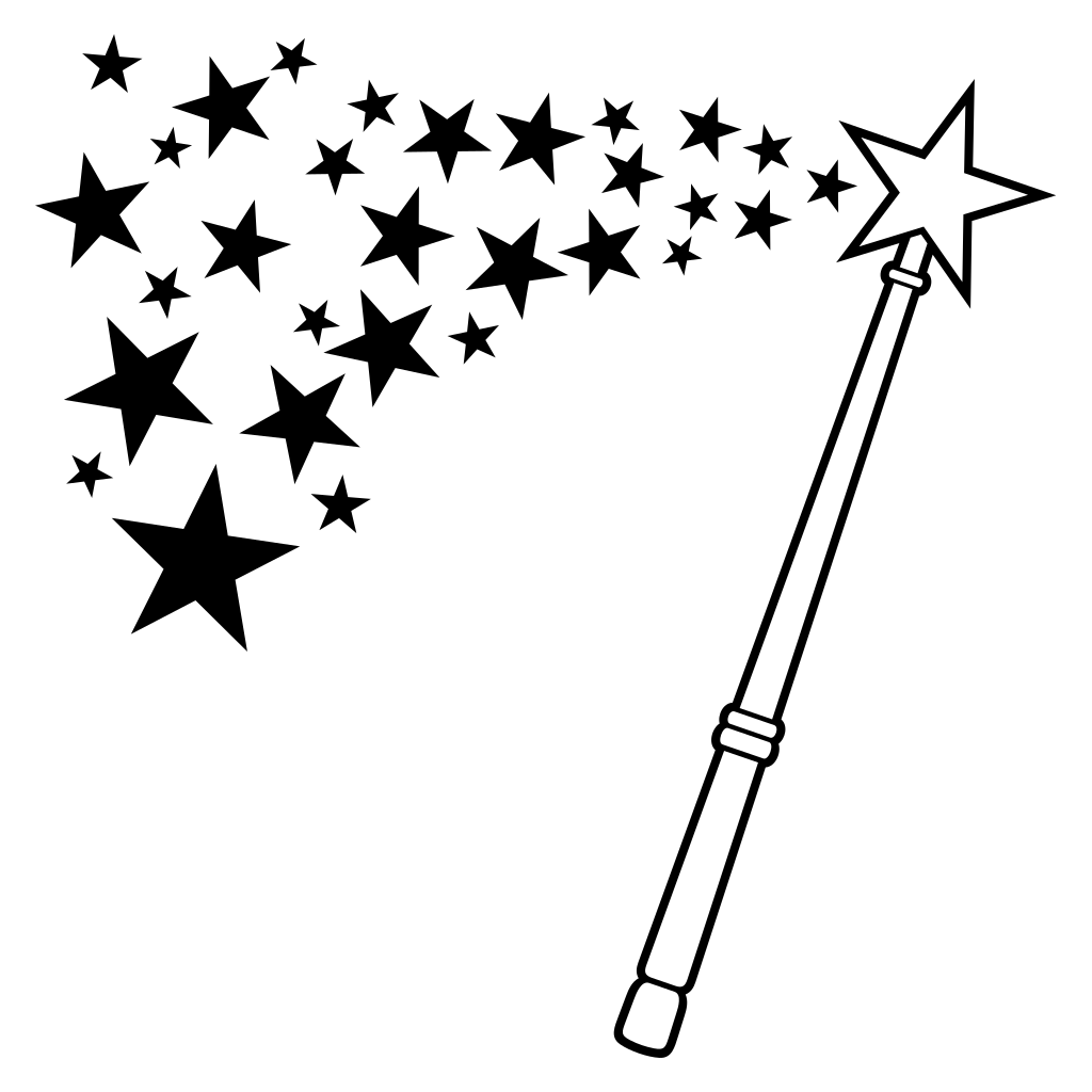 Whimsical magic wand silhouette with sparkling stars design